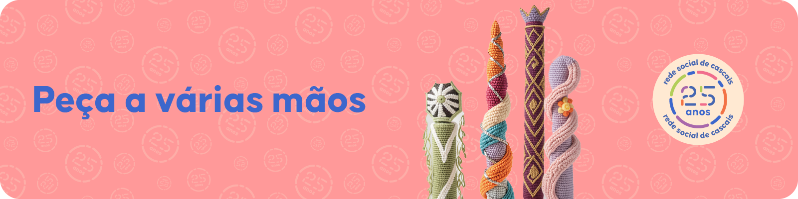Em 2026, a Rede Social de Cascais celebra 25 anos de existência — 25 anos de compromisso, construção coletiva e resposta qualificada às pessoas que vivem no nosso concelho. Para assinalar este marco, o Núcleo Executivo do Conselho Local de Ação Social idealizou a iniciativa “Peça a Várias Mãos | Rede Social de Cascais – 25 Anos”, um projeto artístico que procura refletir a energia, a diversidade e a força colaborativa que caracterizam esta Rede.